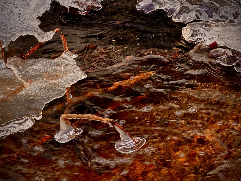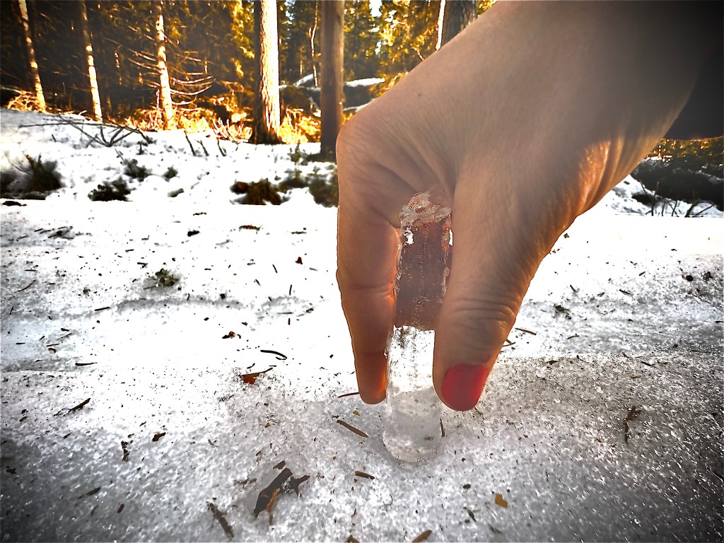 When I set out on the walk, I was completely unaware that it would also be an icy experience. The slippery path required my total presence and sharpened all my senses. I had to watch every step carefully, or I could fall. At worst, breaking a body part. Balancing on the ice and, at the same time, looking for motifs took a lot of effort. The beautiful sunlight brought out different shades of color in the ice and nature. Everything was just so beautiful. How could I choose to limit it to 5- 7 photos? I had planned, wanting to avoid killing my darlings, and there I was. Again choice. Decision. Choice. Decision. The same topic that made me take two different people into my bed.