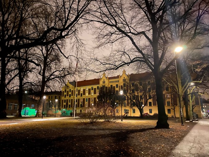 I’ve always thought that cities change their appearance during the night. It became visible to me once a long time ago, while we were traveling for a month in Egypt. A town located in southern Egypt made me aware of this phenomenon. I do not remember the name of that town, but I remember the feeling of it. In the evening, that city was the most romantic spot, with the Nile river as its closest company, but during the day, it transformed into a dusty and dry place. After that, I became aware of how I experienced other cities. Yes, all the towns dress up differently during the nights. Like my place of residence at the moment, the city of Oslo. Here’s a little taste of what my neighbourhood looks like at night.